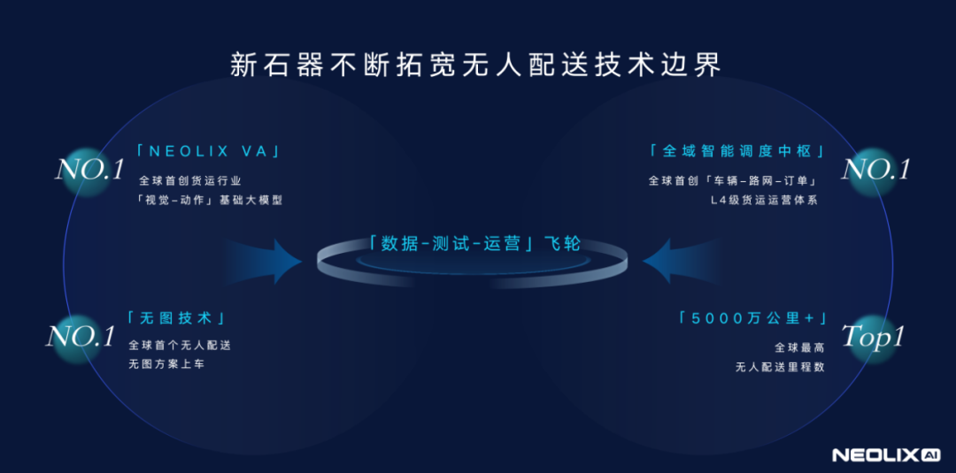 公司已实现货运行业第一个“视觉-动作”基础大模型“Neolix-VA”首次上车,实现完全的端到端,并通过行业首屈一指的空间智能和行为推理能力,使 RoboVan 车队能自然融入复杂交通环境,高效、平稳地完成配送;可满足城市公开道路场景任意点到点的物流需求,以及全球化需求;首创 L4 无人配送“全域智能调度中枢”,通过 AI 算法与大数据融合,实现“车辆-路网-订单”的动态最优匹配,得以打造“低成本、高时效、可规模化”的运力运营体系。