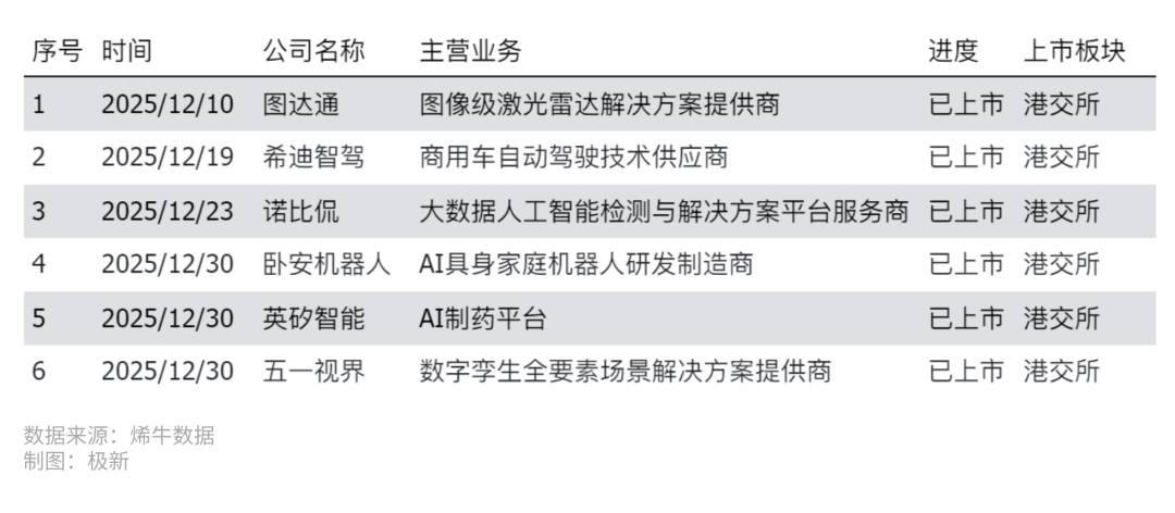 图六:2025年12月我国人工智能领域IPO事件(数据来源:烯牛数据)