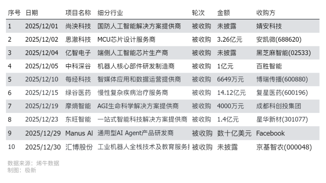 322起融资迎接2026,摩尔、沐曦、英矽上市,智谱、铭之梦递表,Meta收购Manus,字节、钉钉重大升级|2025年12月AI领域投融资分析·极新月报