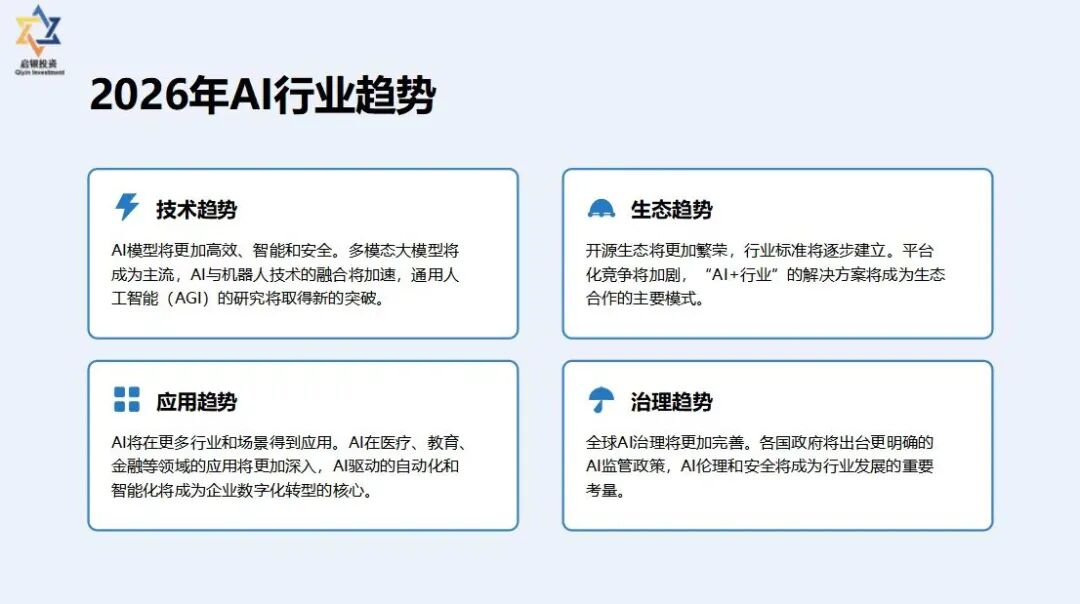 我们认为,具身智能是整个科技行业的重要载体,而如何在这个工具基础上实现更大的价值创造,是我们持续思考的问题。面对2026年的AI发展趋势,我们将继续聚焦技术壁垒建设,希望在竞争中突出自身优势,通过生态连接推动应用落地。我们的投资理念始终围绕市场、技术、模式和团队四个维度展开,早期投资尤其看重团队、技术积累及商业化能力,如果公司每年收入以30%以上,我们非常愿意持续支持并赋能创业企业。