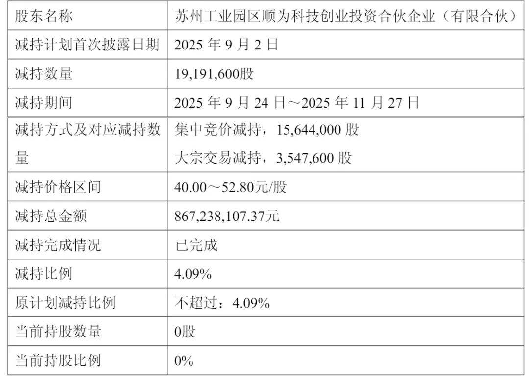 截至目前,苏州顺为不再持有公司股份,减持计划已实施完毕。