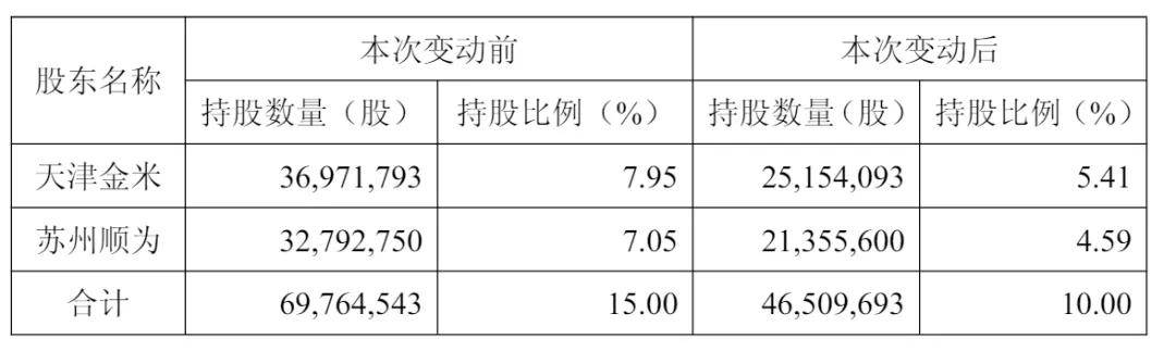顺为于2025年4月21日至2025年6月17日,通过集中竞价交易和大宗交易方式,合计卖出公司无限售流通股11,437,150股,持有公司股份比例由7.05%变动至4.59%。小米和顺为一共减持了5个百分点的龙旗科技股权,其中,小米减持了2.54个百分点,顺为减持了2.46个百分点。