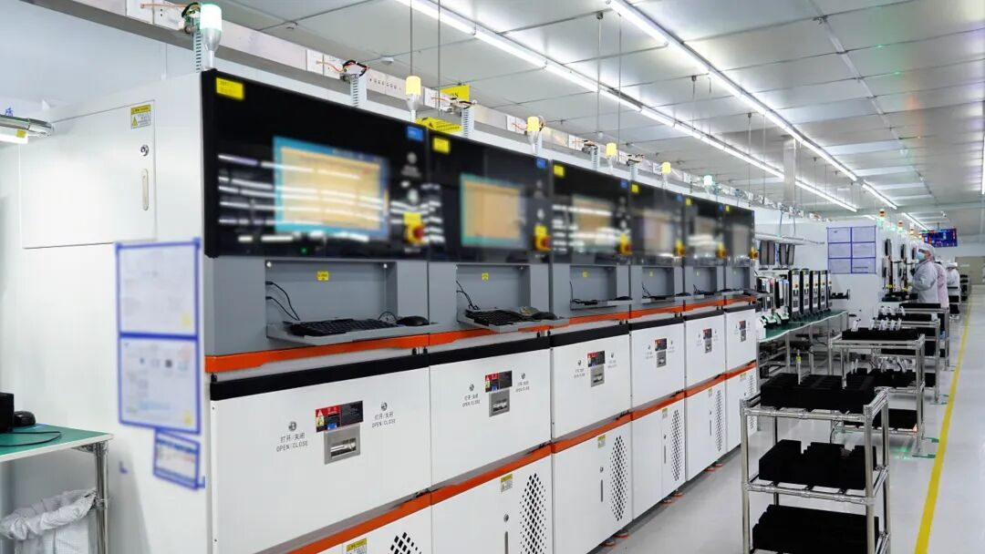 蓝思产线一角,精密的自动化设备正在运行