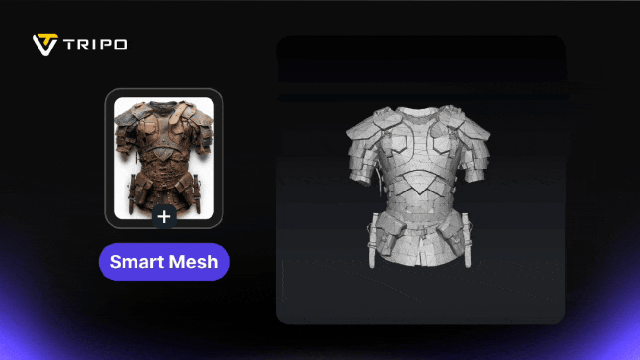 过去的三维网格体生成,往往受困于序列化的妥协:冗长的序列化数据严重制约了生成的效率,而单向的因果偏置更扼杀了空间的全局交互。直到Tripo P1.0 重构空间生成的底层范式,行业才彻底改变这一困境。基于它的Smart Mesh(智能网格)功能,目前也已经在Tripo Studio平台上线。