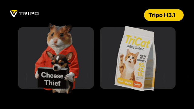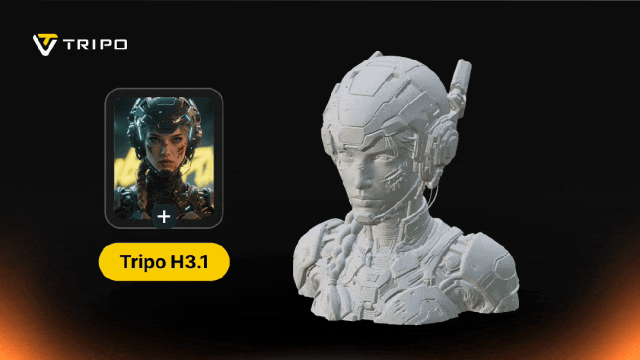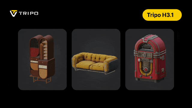 更新后的Tripo H3.1则更进一步,对输入参考图的还原度和对齐度更高,同时在整体结构和局部细节也都有顶尖的表达效果。在角色形体、面部、几何文字等各类案例上,它解决了过去一直以来的卡点。
